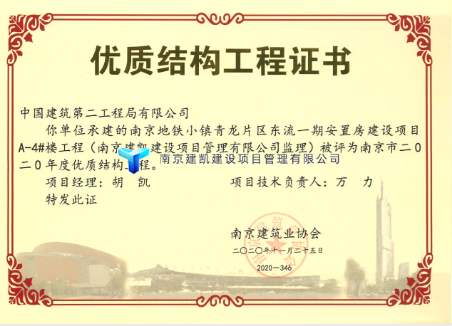 地鐵小鎮(zhèn)項目2號樓榮獲優(yōu)質(zhì)結(jié)構(gòu)工程證書