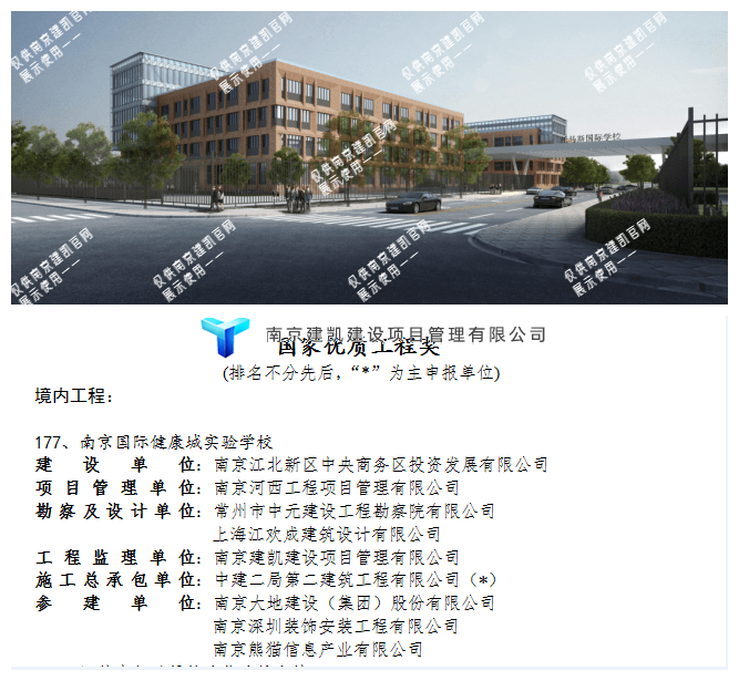熱烈祝賀我司南京國家健康城實(shí)驗(yàn)學(xué)校項(xiàng)目監(jiān)理部榮獲“國家優(yōu)質(zhì)工程獎”