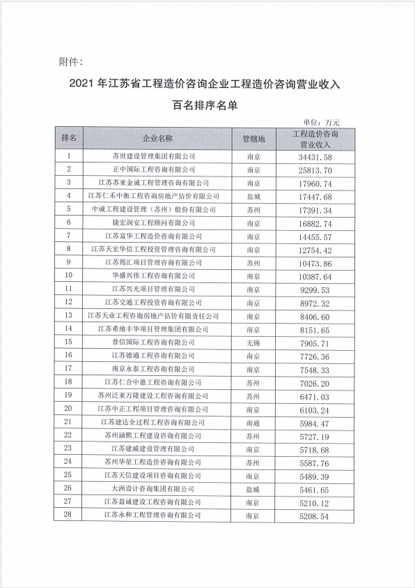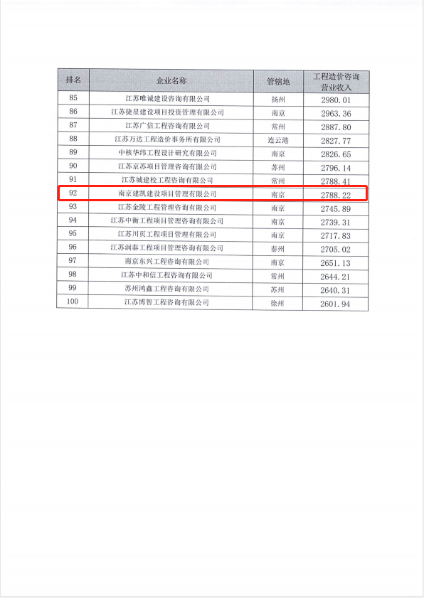 熱烈祝賀我司造價機構(gòu)進入“2021年江蘇省工程造價咨詢企業(yè)工程造價咨詢營業(yè)收入”百強名單
