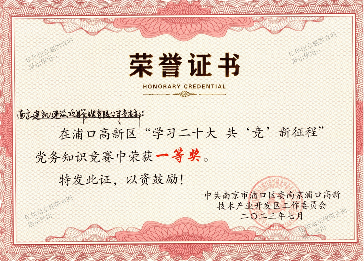 熱烈祝賀我司黨支部榮獲浦口高新區(qū)“學(xué)習(xí)二十大 共競新征程”黨務(wù)知識(shí)競賽一等獎(jiǎng)