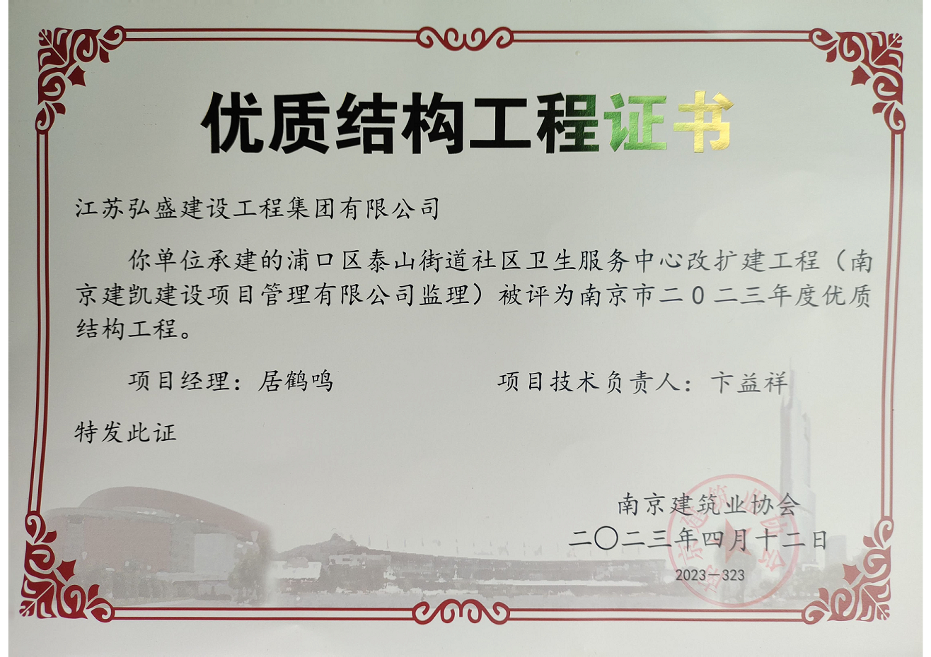 浦口區(qū)泰山街道社區(qū)衛(wèi)生服務(wù)中心改擴(kuò)建工程榮獲“2023年度優(yōu)質(zhì)結(jié)構(gòu)工程”