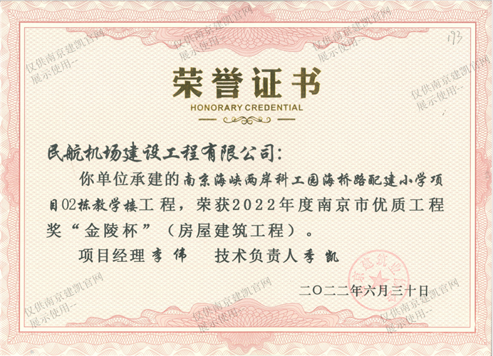2022年度南京市優(yōu)質(zhì)工程獎(jiǎng)“金陵杯”(房屋建筑工程)